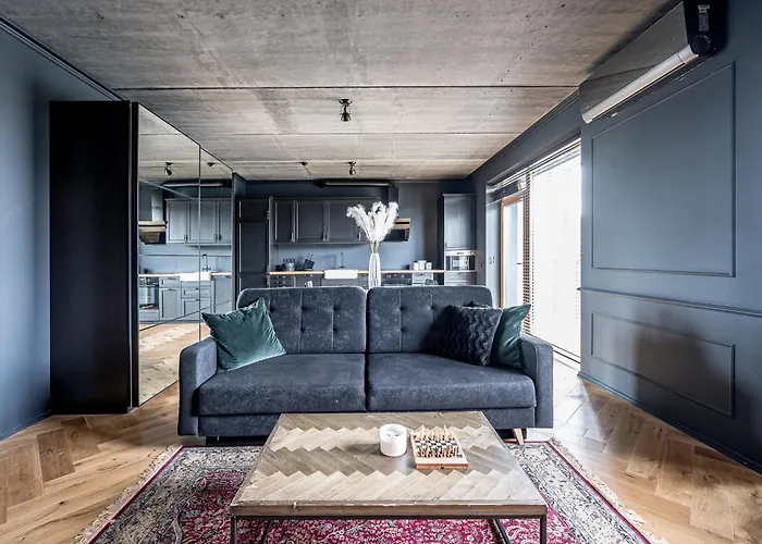Lägenheten City Center Panoramic Penthouse With Rooftop Terrace - Self Check-In Vilnius med 1 sovrum ligger i distriktet Žirmūnai, inom 9 minuters promenad från Nationalmuseet Litauen och inom 2 km från Siemens Arena, som rekommenderas för sportintresserade. Den här 46 m² stora lägenheten erbjuder också en parkering på plats.